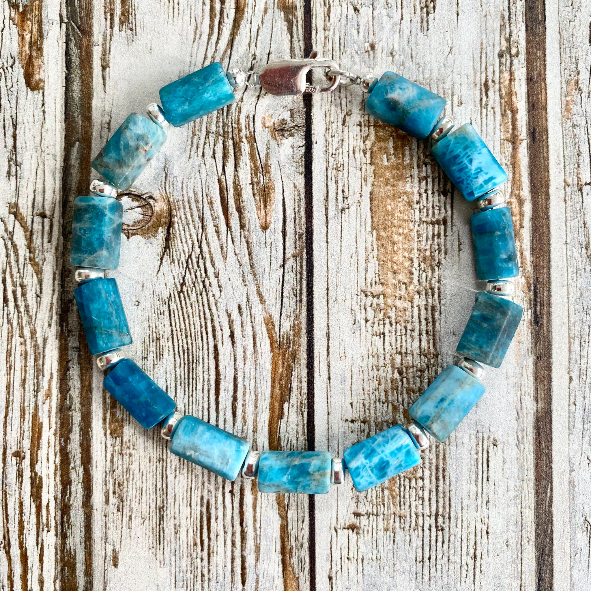 These tube beads are separated by silver spacer beads and a lobster clasp. Stunning colour.