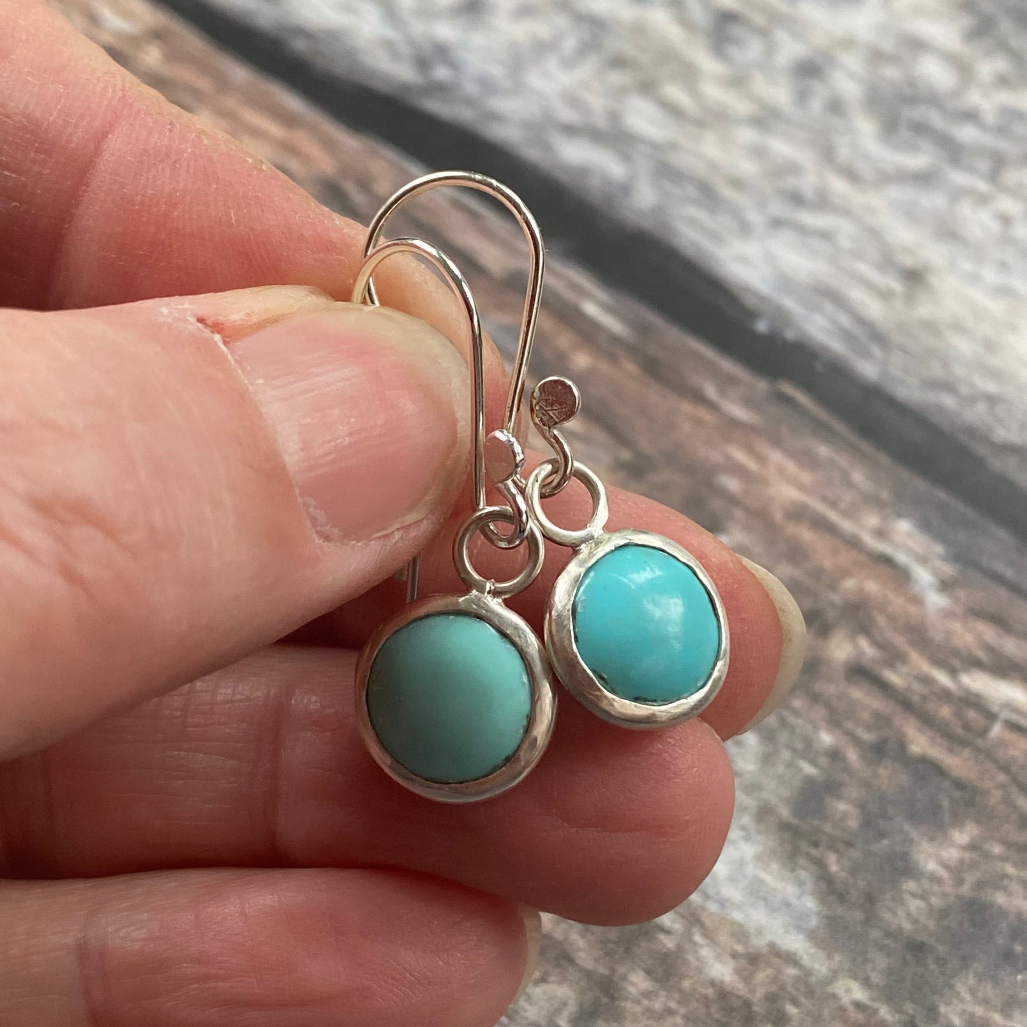 These earrings are sterling silver frame set briolette round stones with the back of the stone showing. Stunning and stylish.