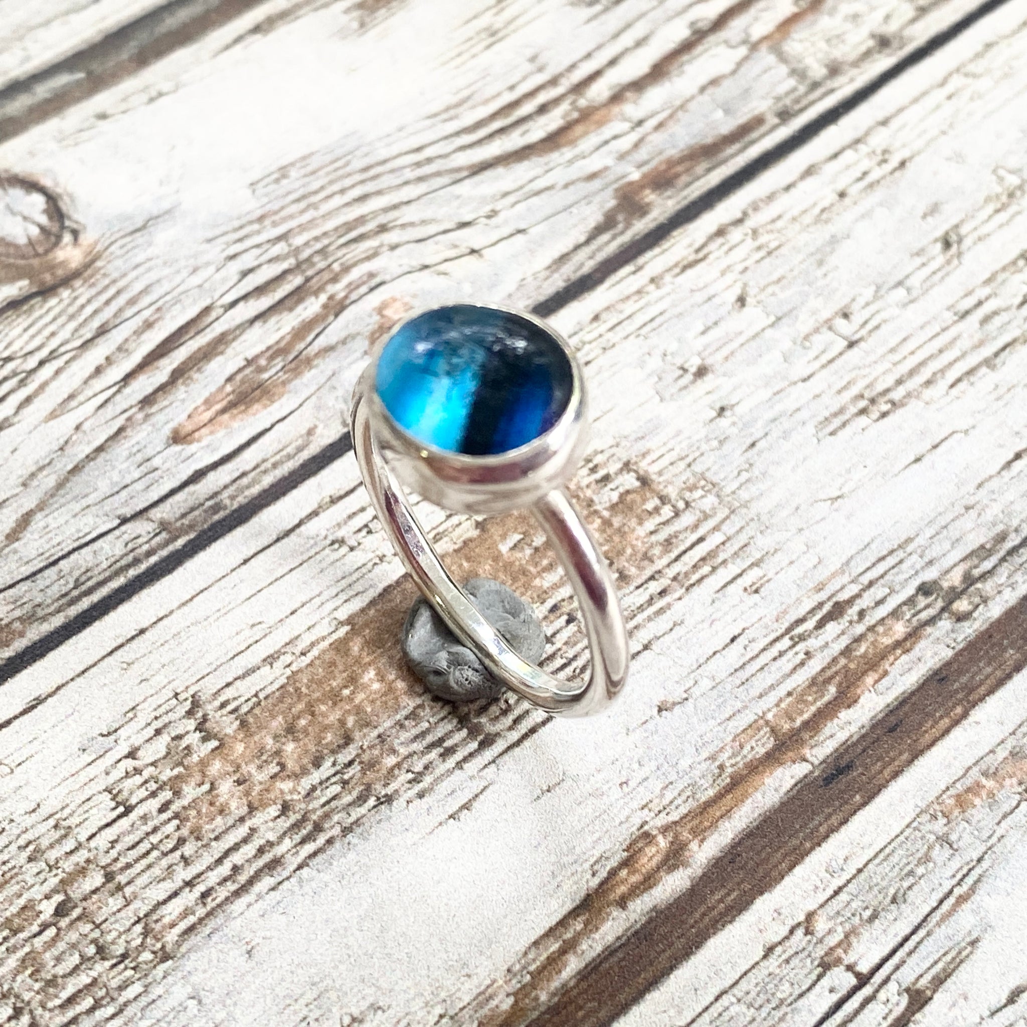 A stunning sea glass ring made from a multi collected at Seaham Beach. Set in sterling silver.